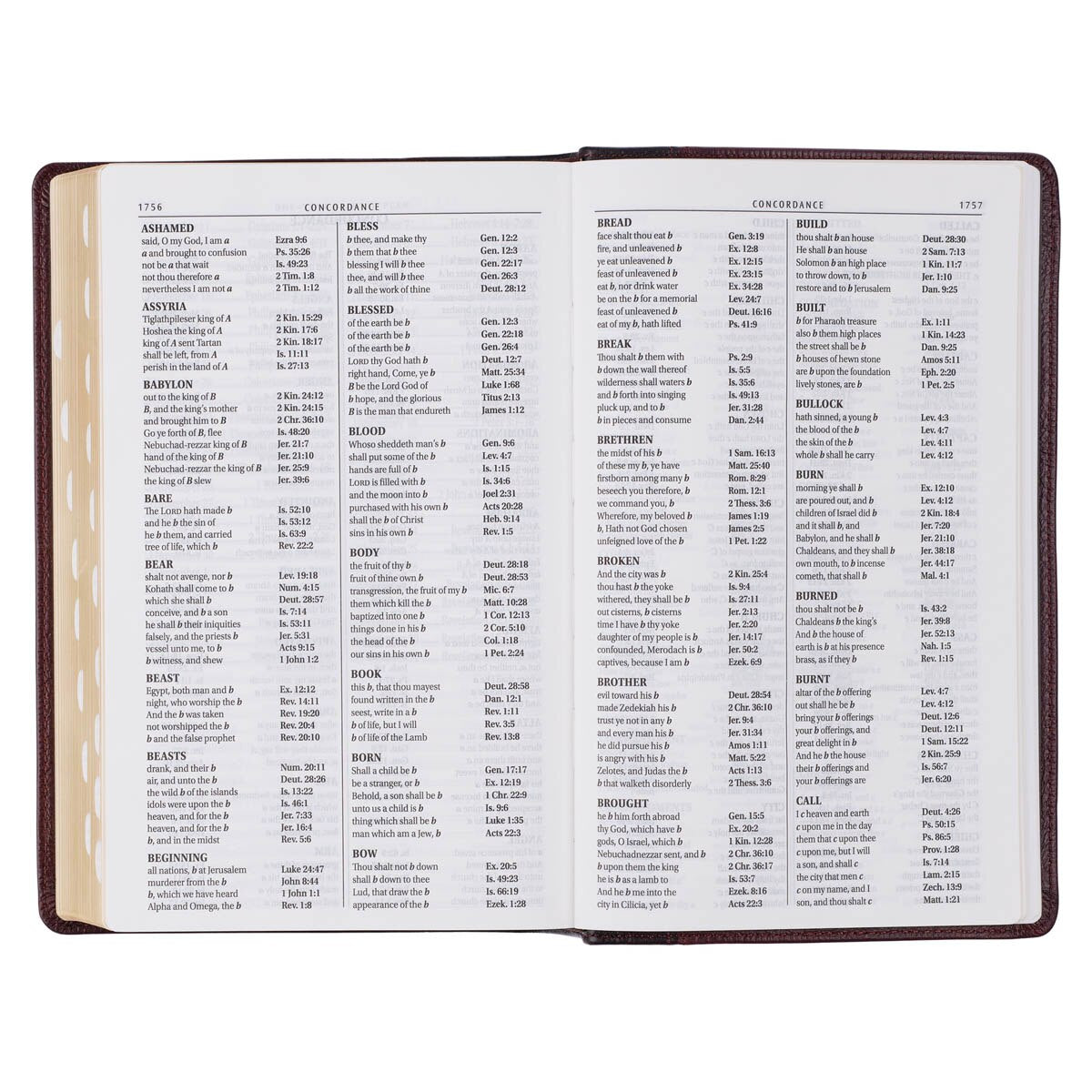 This Giant Print KJV Bible delivers the most comfortable reading experience with its large print. It opens flat, and its 14-point type text is presented in a double-column, easy-to-read format. Thumb-indexing tabs allow the reader to locate every book in the Bible quickly, and there is an attached satin ribbon to mark pages. A thematic Scripture verse finder, concordance, full-color maps, cross-referencing, and a one-year reading plan further enhance the study qualities of this Bible, and the words of Christ are printed in red ink.