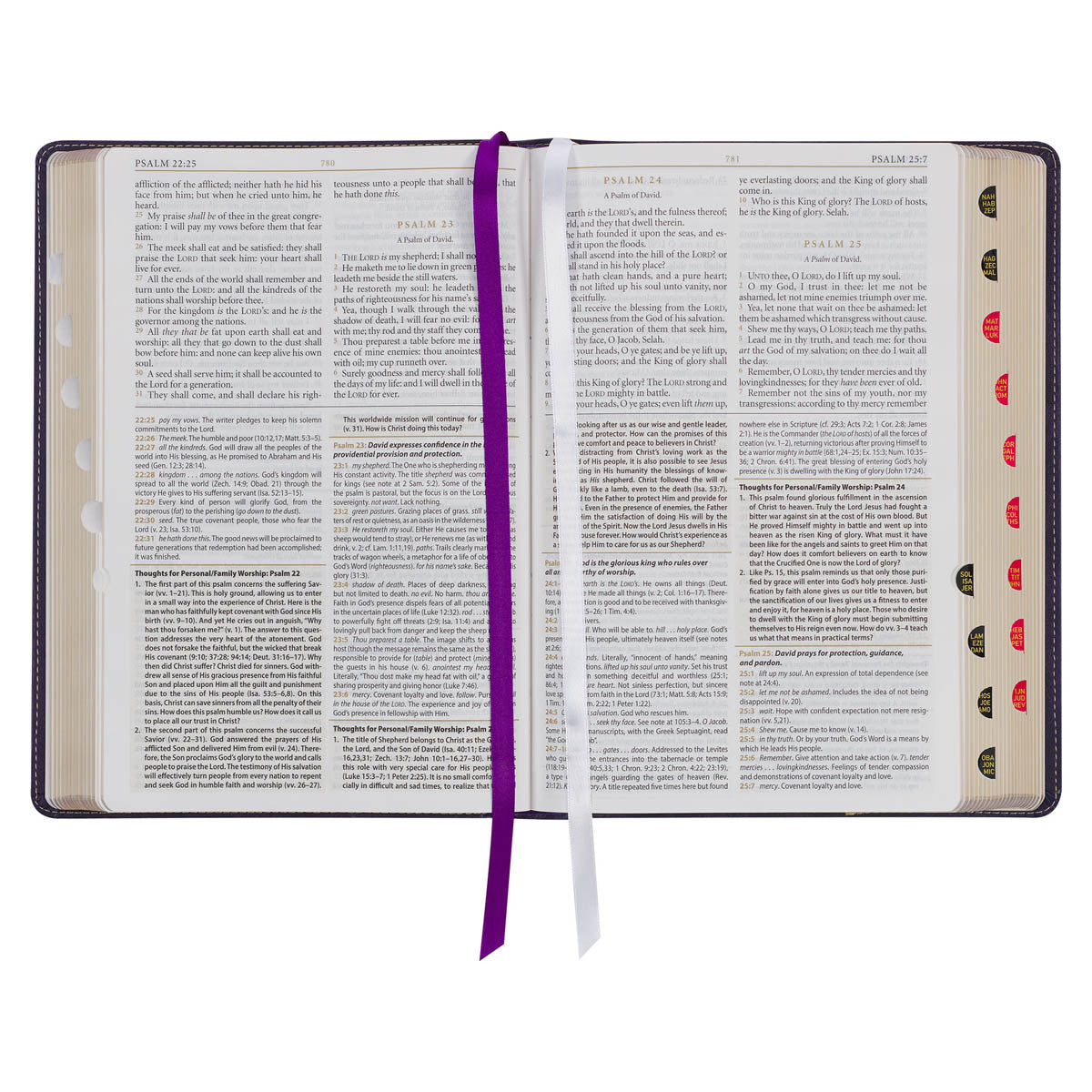 Immerse yourself in profound spiritual exploration with the elegant Two-tone Purple Faux Leather Large Print King James Version Study Bible with Thumb Index. With its large print and emphasis on daily devotions, it serves as the ideal companion for your personal Bible study journey.