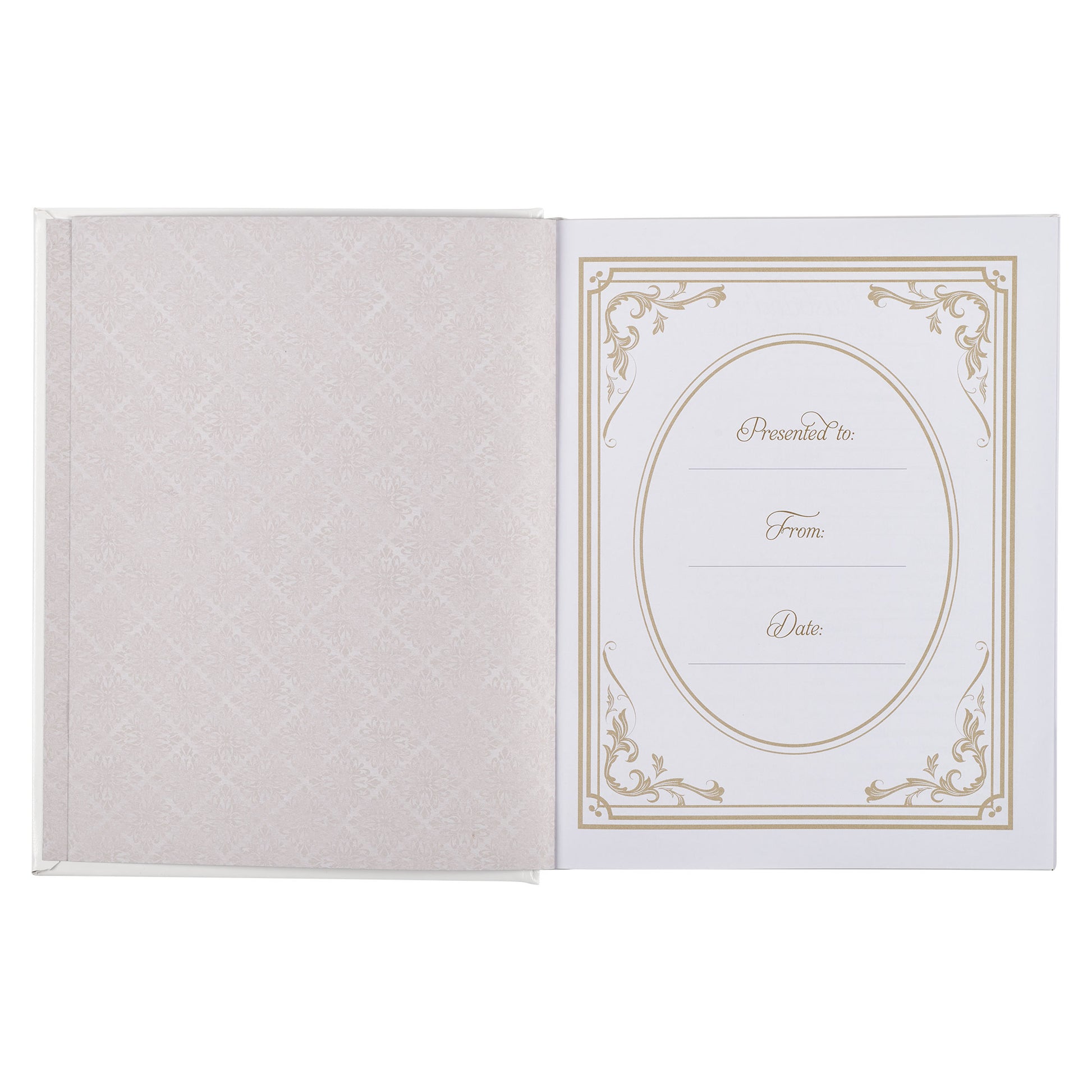 The White Faux Leather Hardcover Family Heritage Bible makes the perfect White Wedding Gift for an engaged couple - a treasured keepsake that will inspire and strengthen the couple's bond for years to come. Give the gift of love, faith, and family heritage with the White Faux Leather Hardcover Family Heritage Bible.