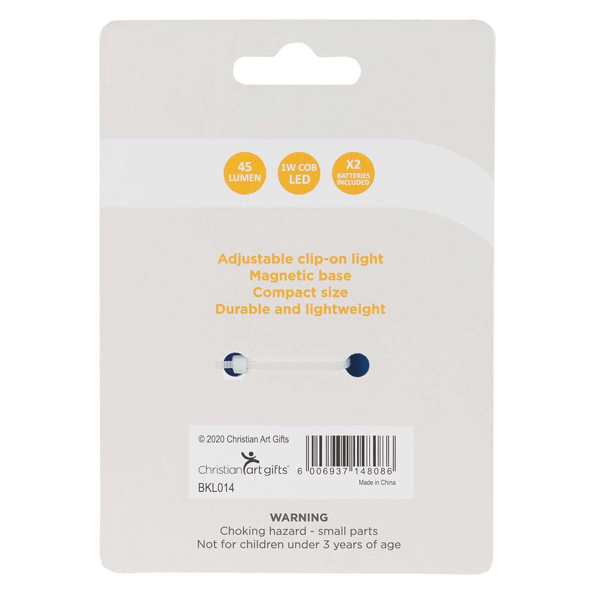 The With God All Things Are Possible Blue Clip-on Book Light can be attached in two ways: clip-on and magnetic, so it's a must-have when you travel or plan to study late. Slip into a pocket, briefcase, backpack, or Bible case to light up a page or a computer screen or attach it to a metal surface like a music stand to light up even more space. It can even help as an emergency light source so keep one in your emergency toolbox!